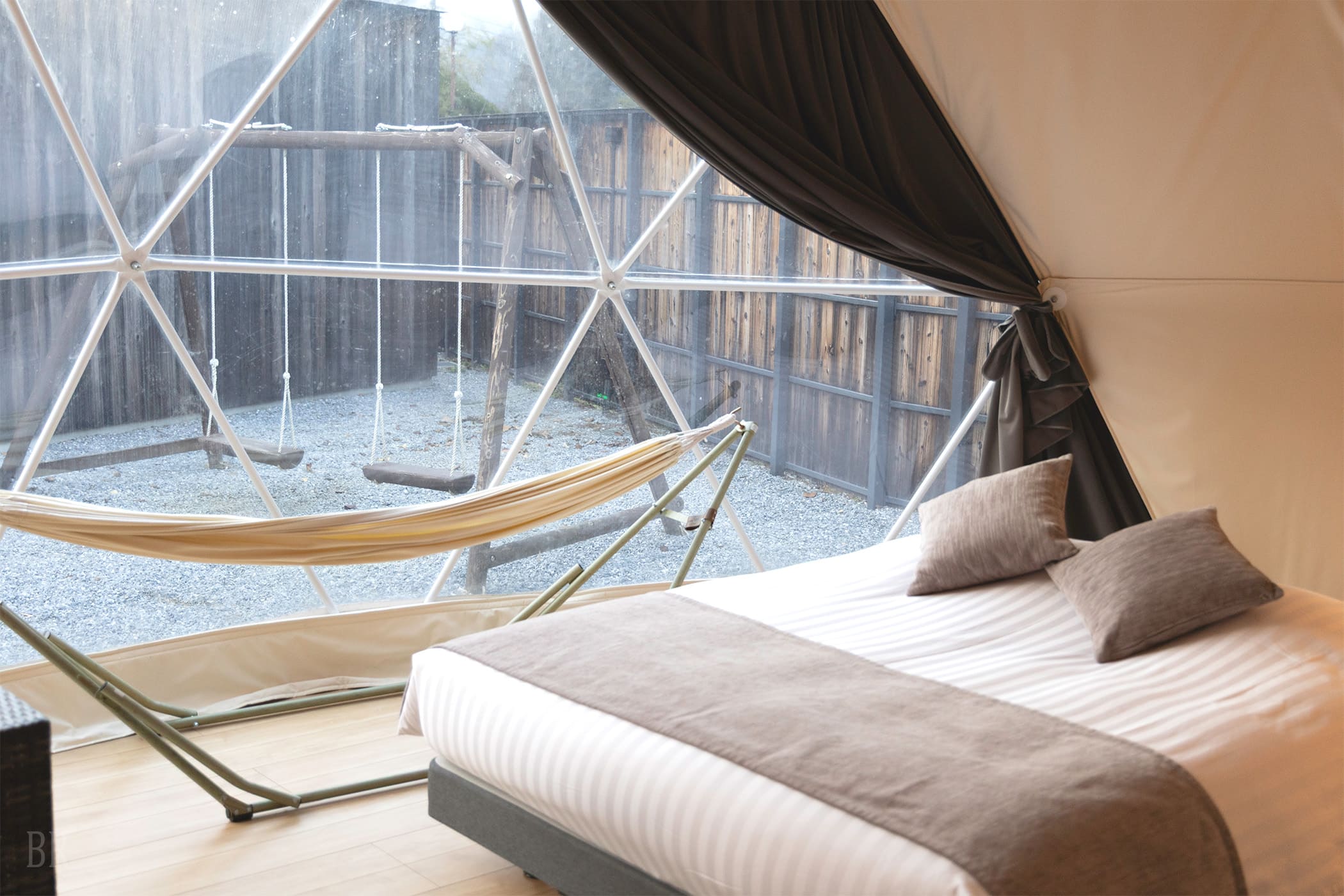 It is approximately a 90-min drive from Tokyo. Our private glamping facility “La Nature” opened in Sano City, Tochigi, where you can enjoy seasonal rich nature, such as trees and clear streams, and get away from the hustle and bustle of the city. Each room is equipped with guest room onsens, and there is a large public bath in our facility. For dinner, you can enjoy glamping BBQ using Tochigi’s ingredients. For dog lovers, we offer rooms where you can stay with your dogs limitedly for 1 groups per day. Please enjoy a refreshing stay in an extraordinary space, experiencing private outdoor activities while hearing birds chirping.